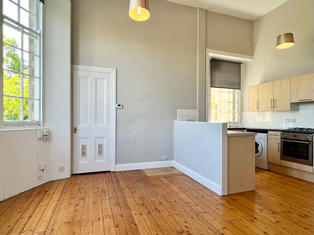 Newly painted, the accommodation offers a spacious open plan lounge with dining recess and well equipped kitchen. The kitchen includes an oven, hob, fridge and washing machine.