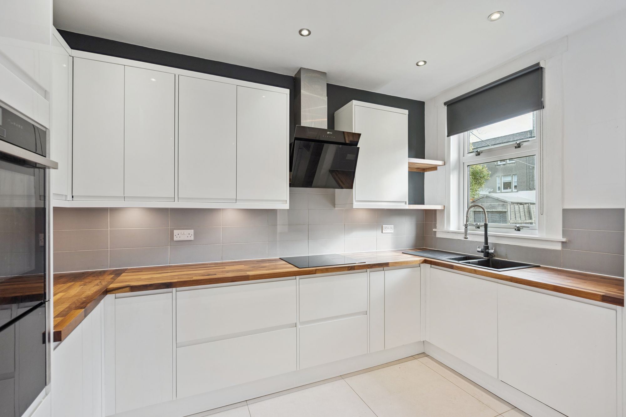 The property is entered via is private front garden space and path leading to the front door. The welcoming, upper level property, is split over two levels with most rooms situated on the first floor. The hallway leads to the recently modernised dining kitchen, a fantastic family space and with ample worktop areas for meal prep. There is a good range of floor and wall mounted units and integrated appliances to include induction hob and stylish extractor hood, electric oven, dishwasher and large free standing fridge freezer. The wood worktops and accent tiles compliment the harmonious space.