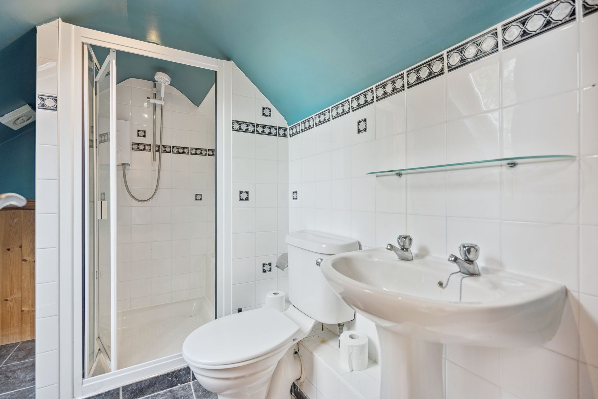 The large lounge with feature fireplace has ample area for different furniture arrangements, boasting plenty of light thanks to the generous windows. There are three, well sized double bedrooms on the first level, as well as a clever box room/office room. There is a modern bathroom with shower over bath, WC and basin, as well as ample storage space to complete the first level.