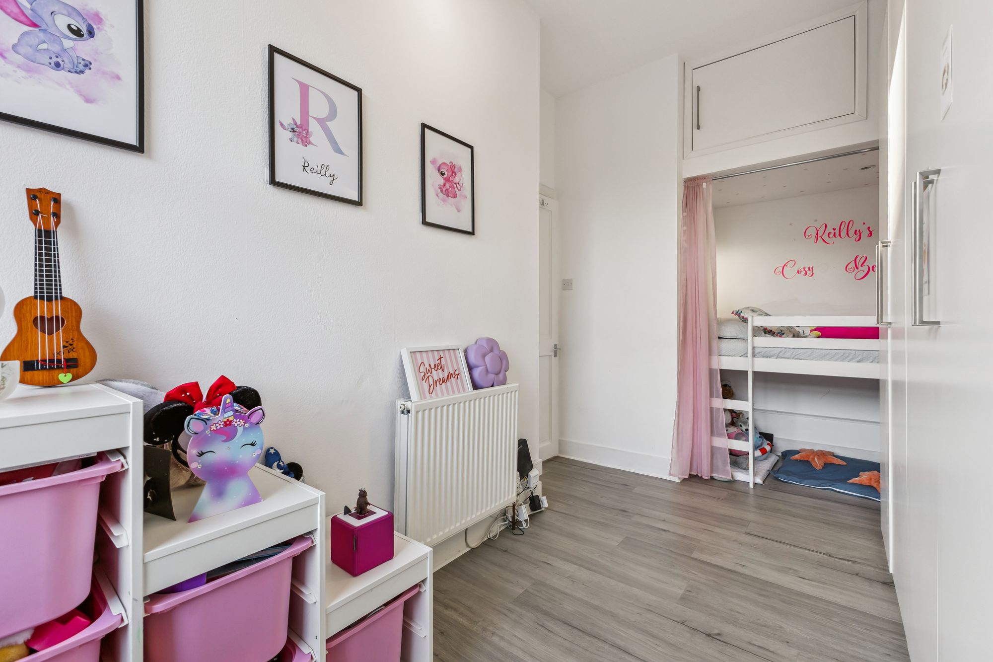 The modern kitchen is fitted with an excellent range of base and wall units, complemented by stylish work surfaces and contemporary appliances. A pleasant outlook over the private rear garden completes the space. Both bedrooms are generously sized doubles, finished in neutral tones and featuring durable LVT flooring for ease of maintenance.