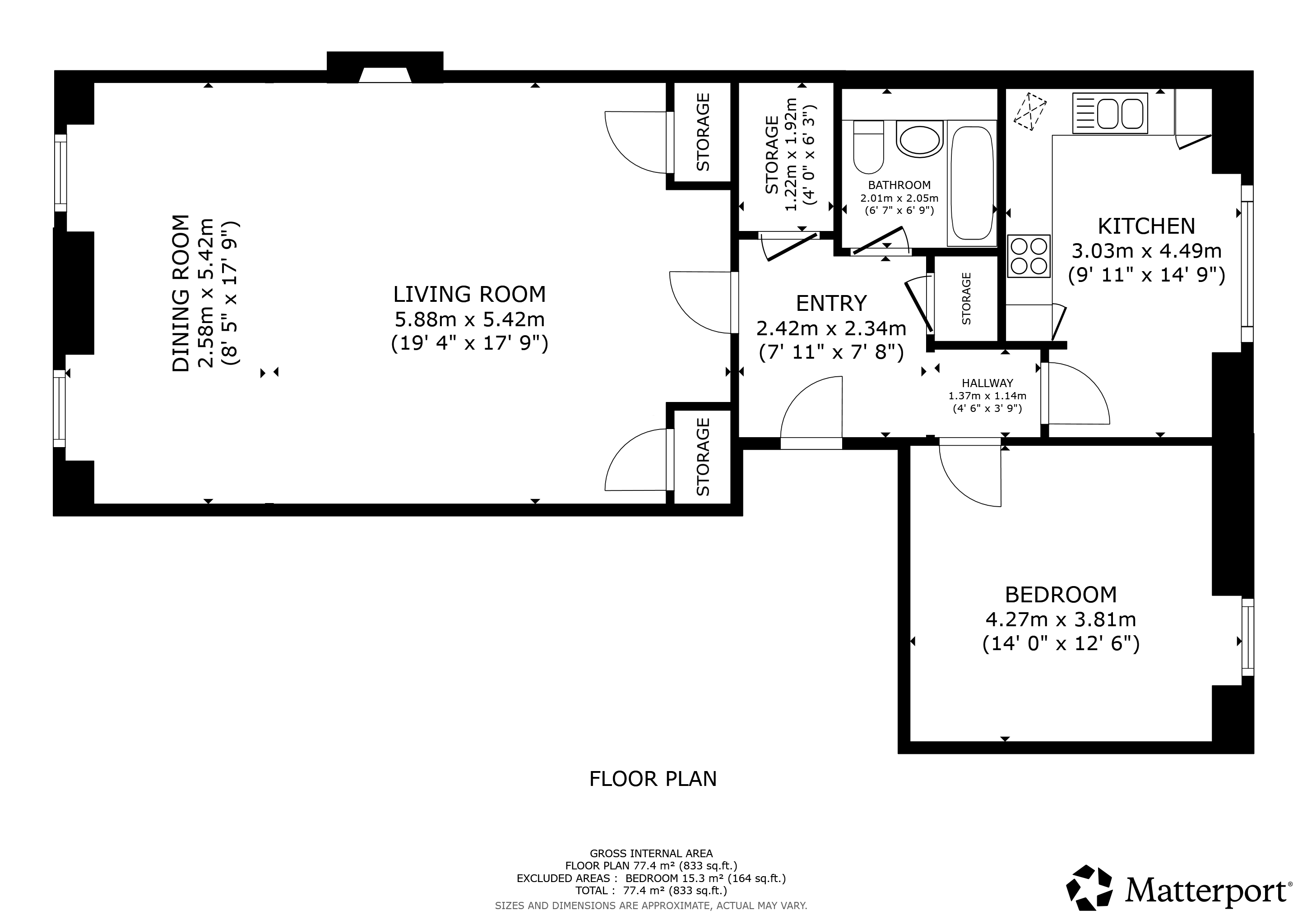 The bathroom is styled traditionally and features a three-piece suite, including a full bath.