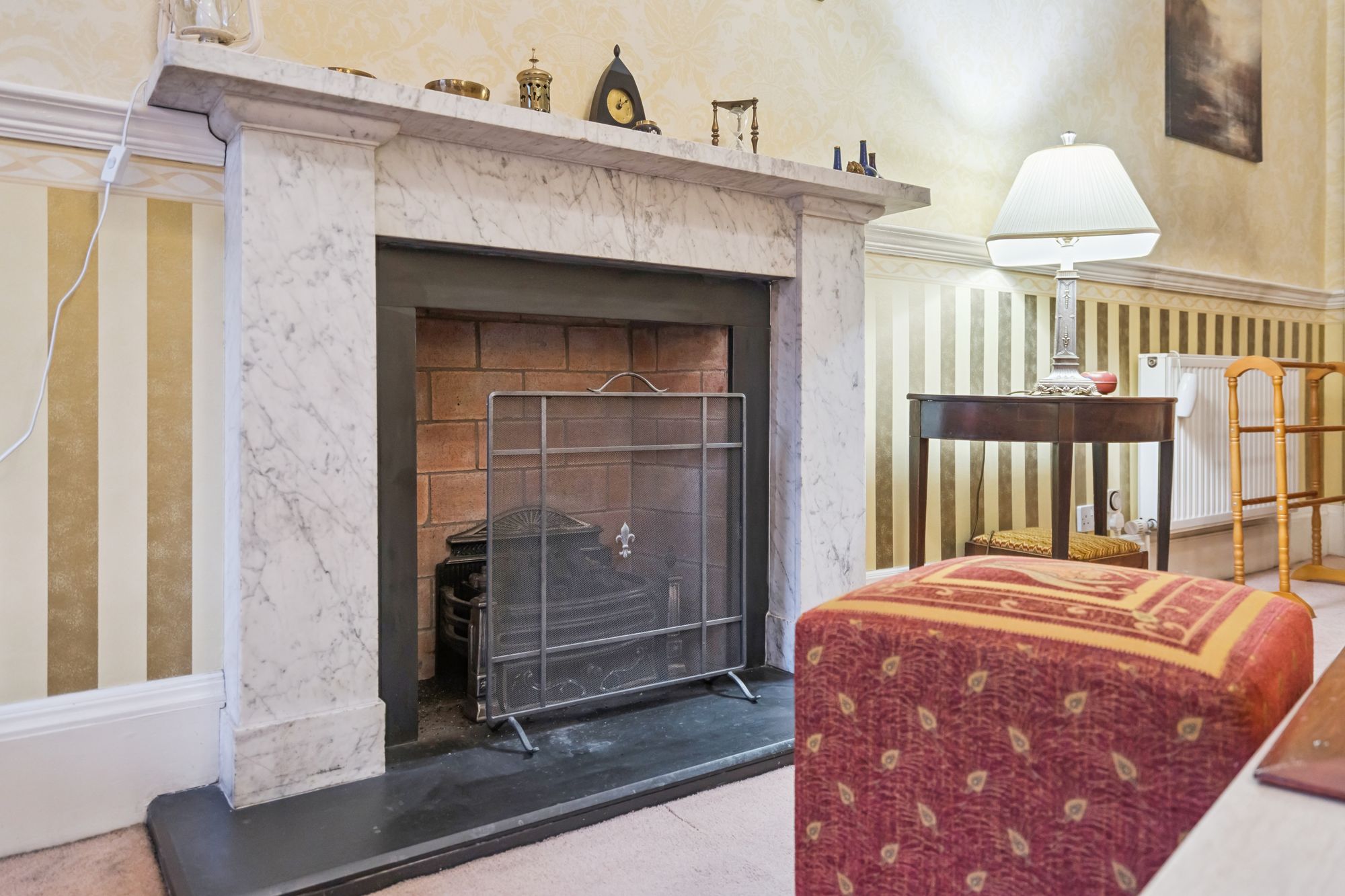 The apartment further benefits from gas central heating and single-glazed sash-and-case windows in keeping with the property’s period character.