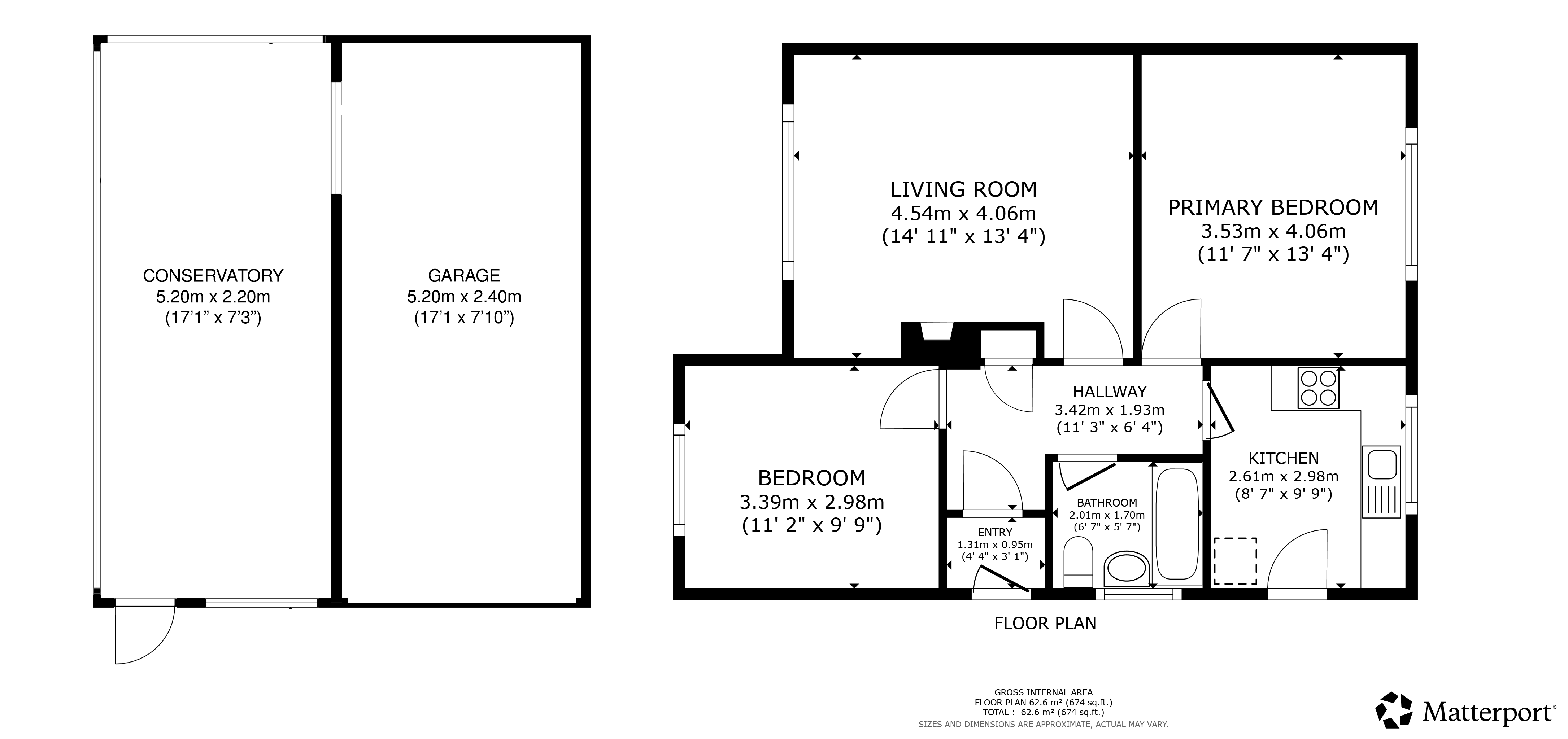 There are two well-proportioned double bedrooms, with the principal bedroom benefiting from fitted wardrobes. The property also includes a conservatory, ideal as a family room, home office, or relaxing retreat, along with a single garage offering useful additional storage.