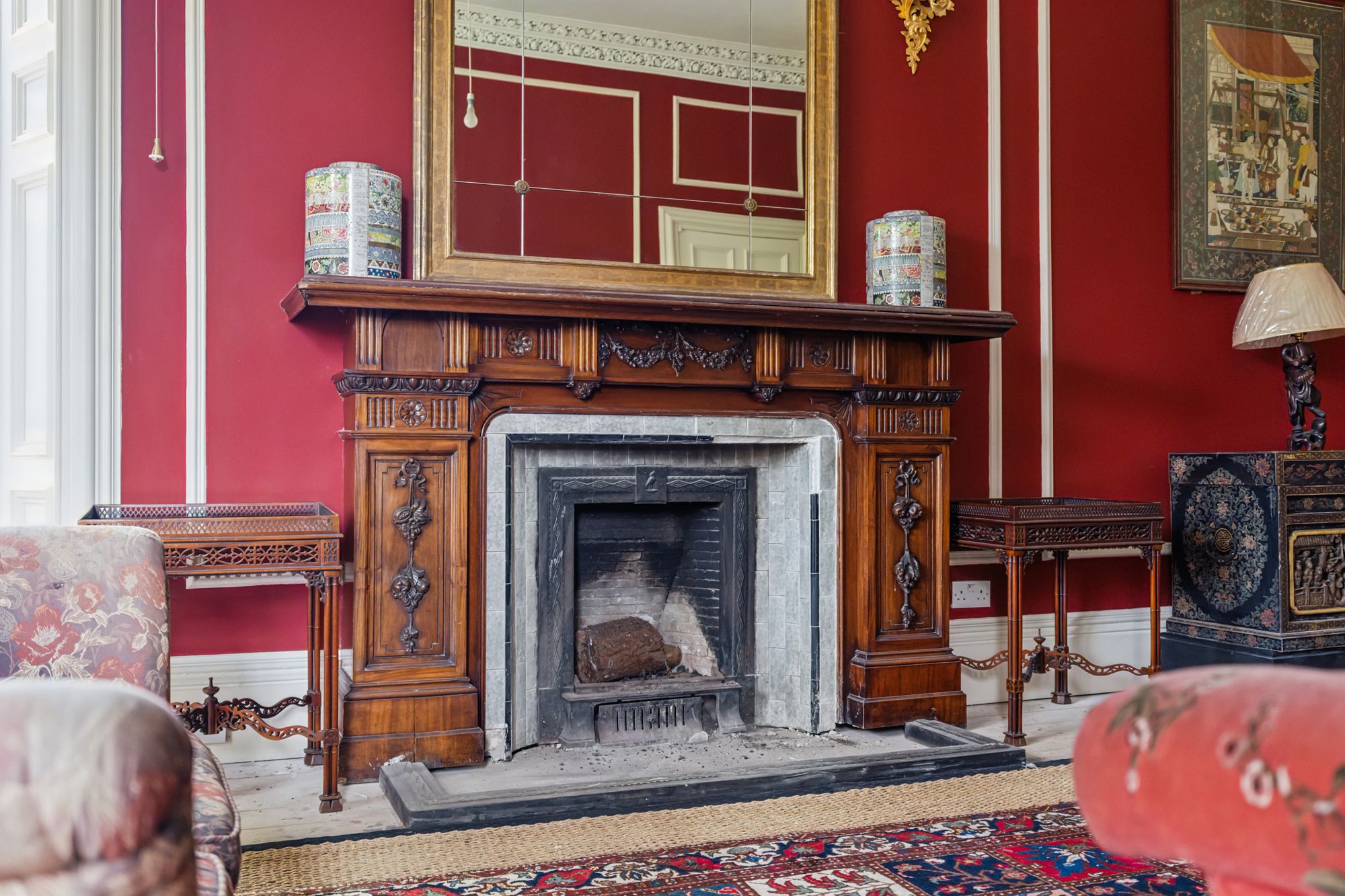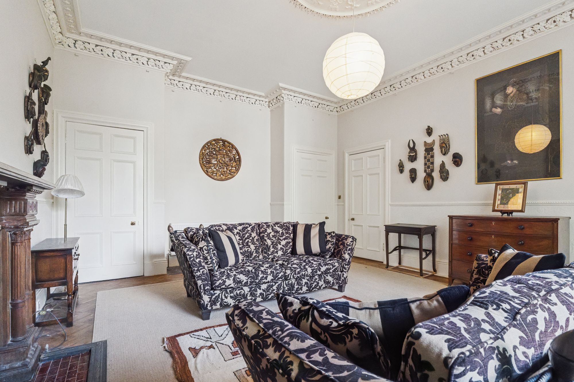 - Large reception room with magnificent shutters, carved fireplace, cornice and ceiling rose