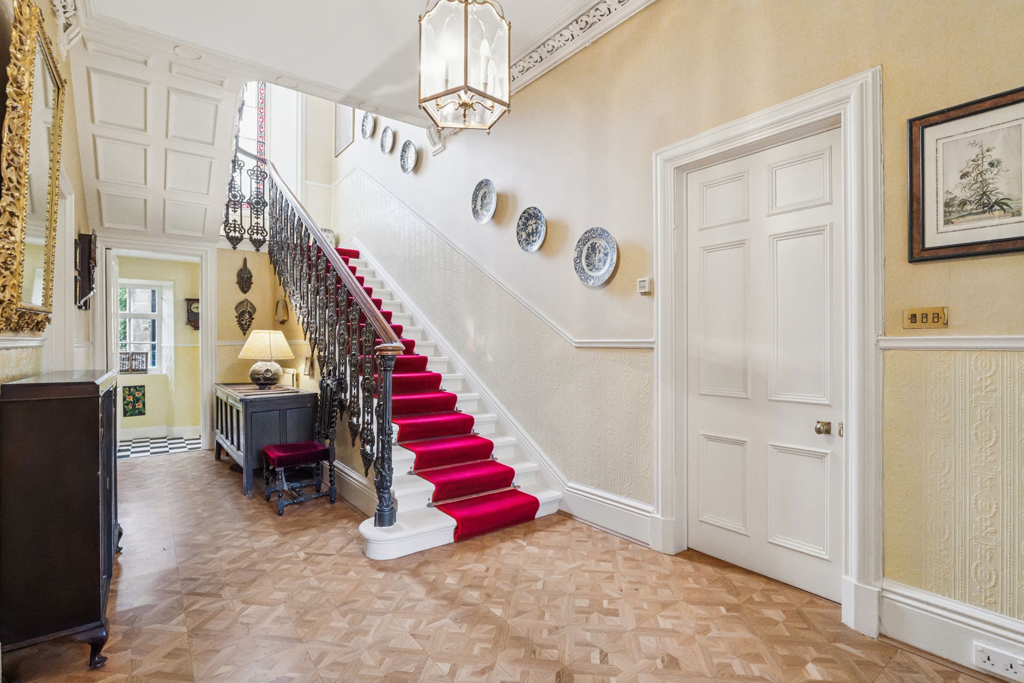 - Grand entrance hall and ornate staircase